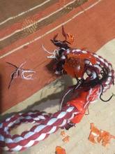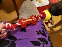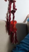 very bad quality toy, the rope pop out in 1 minute of playing, in 5 minutes the dog had distroyed the thin rubber bone and I had to trow it away.