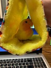 Hammock came in a package, clean, new, soft and with hooks. All the details are with him. The parrot immediately went into it, especially he liked to chase him)) in the cage has not yet hung on the photo, but in the cage, too, without problems, hangs. The goods are definitely satisfied and the delivery time is also.